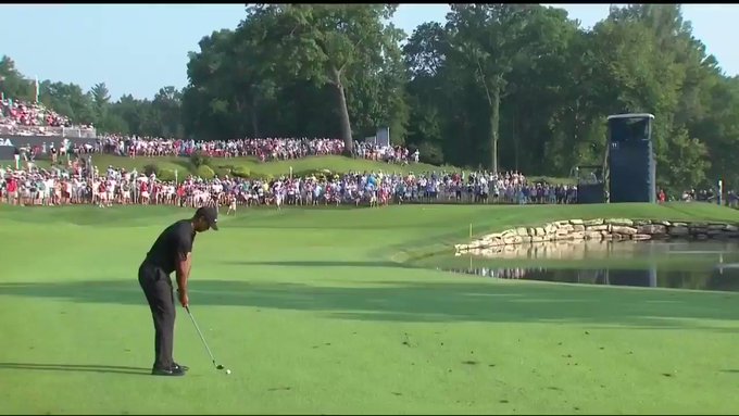 10:48 a.m.: After a wild tee shot, Tiger finds the green with his second and two-putts from 88 feet for par. He shoots 66 to move to four under entering the third round. Over the first two rounds, Tiger tops playing partner Rory McIlroy by one, but loses to Justin Thomas by two shots. Thomas was particularly impressive this morning, shooting a four-under-par 31 on the back nine to move into the top 10.